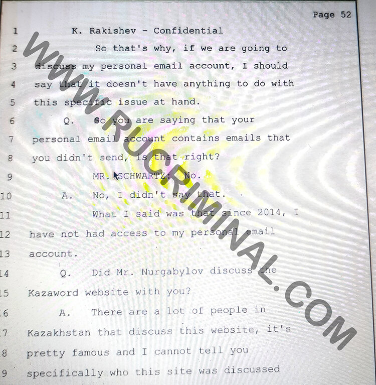 А теперь rucriminal.info публикует распечатку показаний Ракишева в суде США о якобы «липовой» переписке.