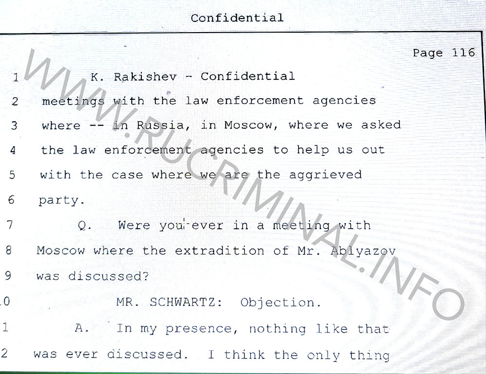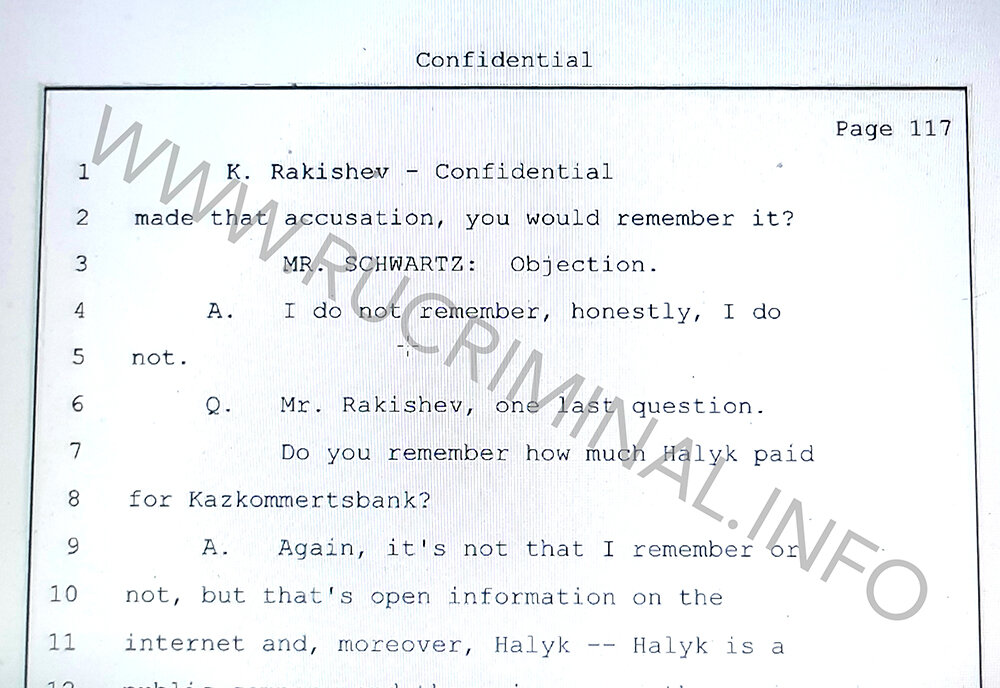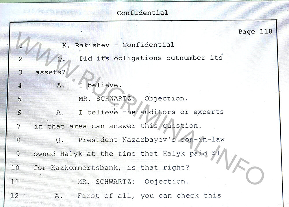 MISTER. SCHWARTZ: Objection.R. First of all you can check this and see all this information in the public domain. We never concealed anything about this deal, it was an open deal. If this is related to the case in New York, you can officially request this information from Halyk Bank and Kazkommertsbank and get a response to your request. Nobody hid anything