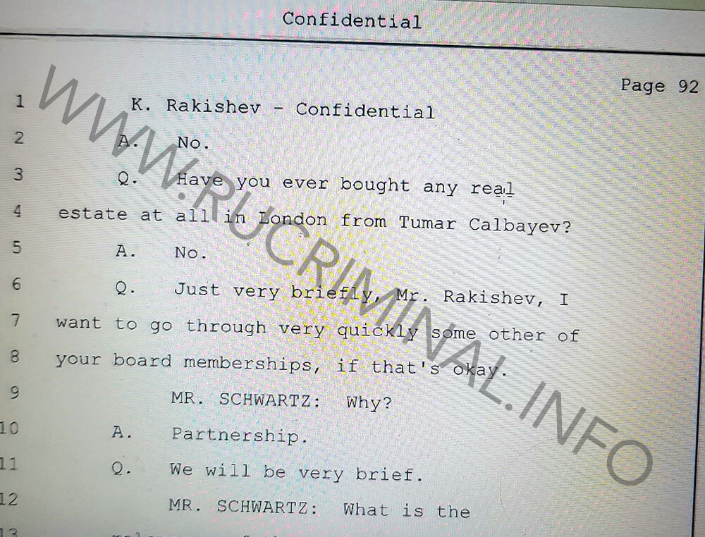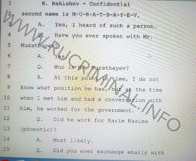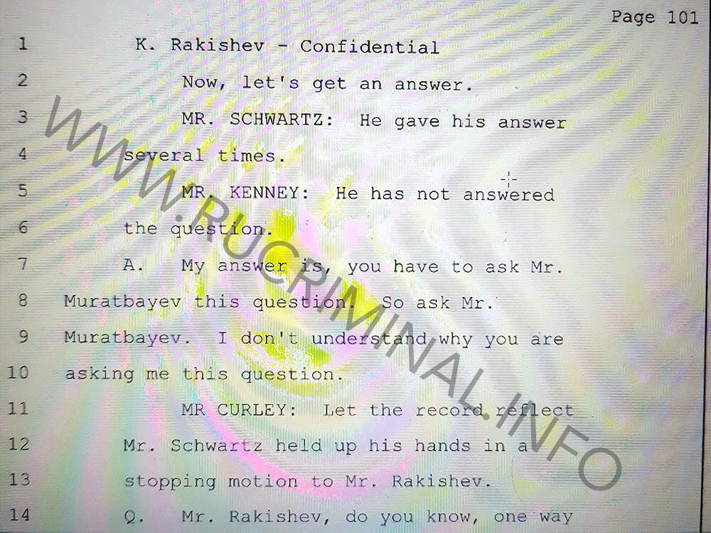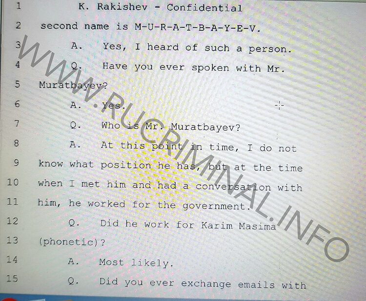 rucriminal.info continues a series of articles about American revelations of Kazakh oligarch Kenes Rakishev. We present the hearing materials in the US court where the claim of the chairman of the board of directors of BTA Bank Kenes Rakishev to the former owner of the bank Mukhtar Ablyazov, the former head of the capital of Kazakhstan Viktor Khrapunov and his son Ilyas Khrapunov was considered. At the disposal of rucriminal.info was a transcript of the interrogation of Kenes Rakishev, during which his questions were driven to an impasse and he was forced to disclose the secrets of the Kazakh elite. From the fourth publication, readers will be able to see how during the hearings Rakishev leads to two extremely painful subjects for him. The first one is about his relations with the son-in-law of Nursultan Nazarbayev Timur Kulibayev. There is an opinion that the owners of all assets allegedly owned by Rakishev are in reality Kulibayev and other people from Nazarbaev’s closest circle. All the questions about Timur in the American court cause Kenes to panic. With great difficulty, under the pressure of lawyers, he recognizes the fact that Kulibayev is his close business partner. And when Rakisheva is asked to buy him real estate for Kulibayev (count for the Nazarbayev family) in London, he panics.