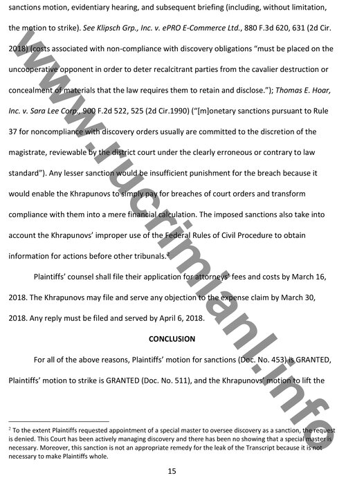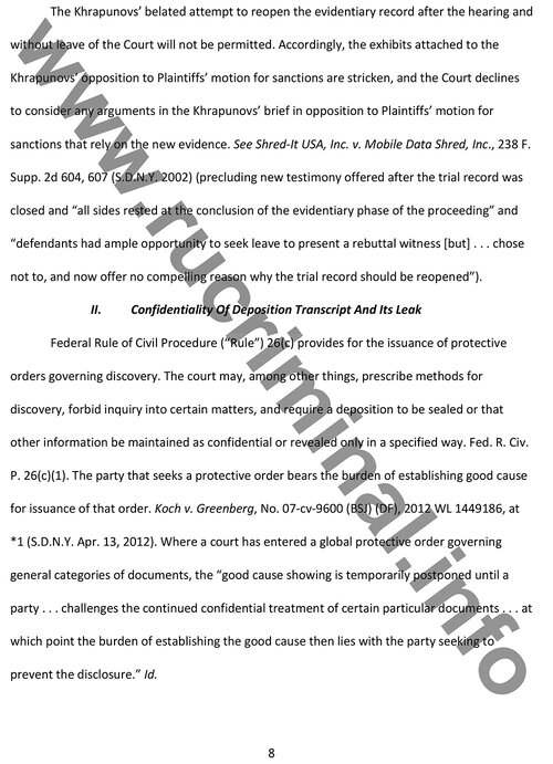 In light of this post in the Facebook Post, the plaintiffs asked for a protective order restricting Rakishev’s answers during the interrogation to questions that are only relevant to the essence of the hearings. The court granted this request on October 10, 2017.