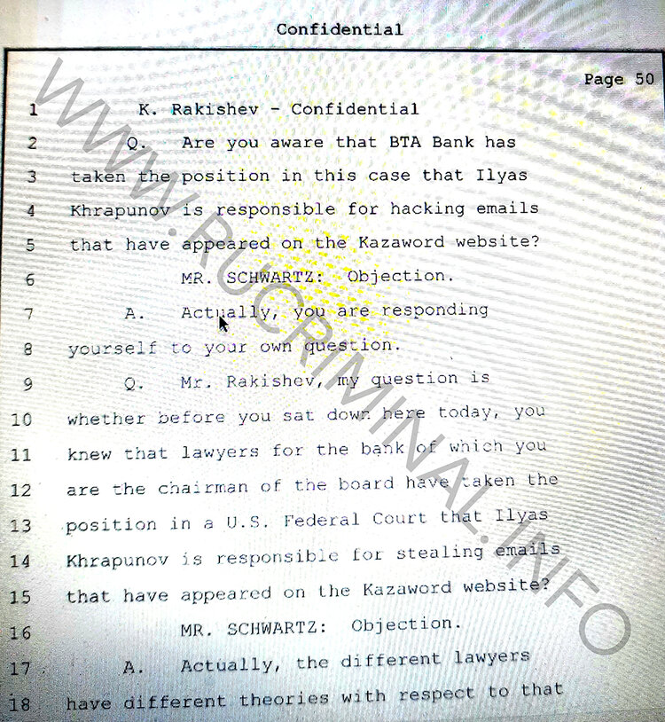 Lawyers tried in every possible way to protect Rakishev from questions about his relations with the President of Kazakhstan Nursultan Nazarbayev, his son-in-law Timur Kulibayev and the head of the KNB Karim Massimov. Rakishev himself, getting such uncomfortable questions, in the opinion of rucriminal.info, was visibly nervous. However, he was under oath and they had to answer.
